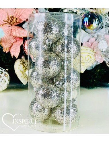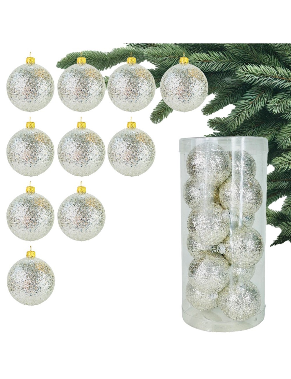 Plastikowe bombki platynowe z brokatem to elegancki dodatek do Twojej choinki. W zestawie znajduje się 10 sztuk o średnicy 50 mm, wykonanych w Polsce z wysokiej jakości materiałów, które dodają blasku i wyjątkowego uroku każdemu wnętrzu.