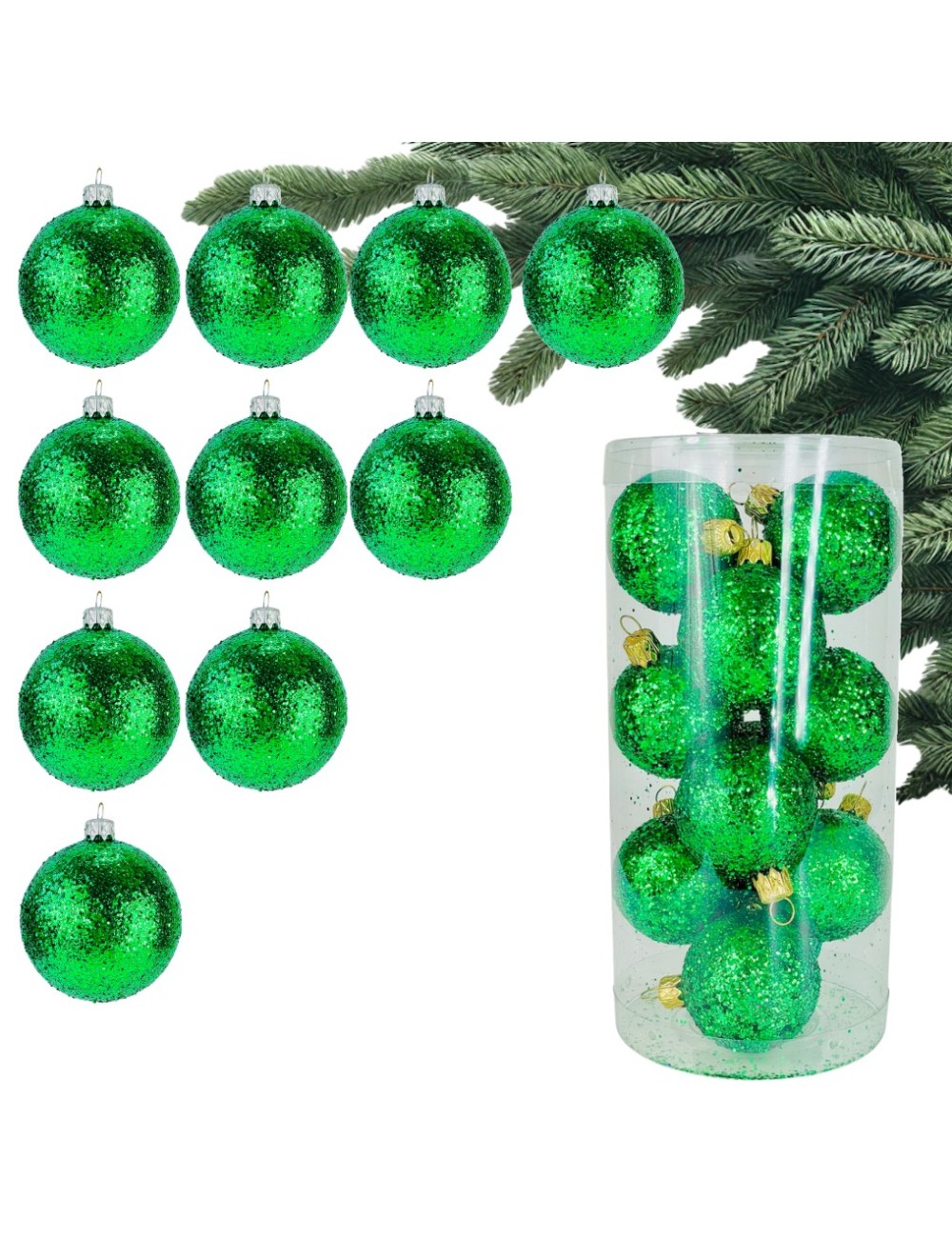 Zestaw 10 zielonych bombek choinkowych z brokatem o średnicy 50 mm to idealna dekoracja na Święta. Wysoka jakość wykonania z trwałego tworzywa sprawia, że bombki są odporne na uszkodzenia. Dzięki metalowym szypułkom ich zawieszenie jest wyjątkowo proste i wygodne.