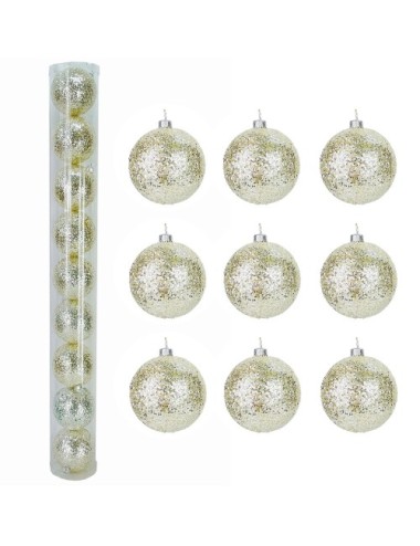 Plastikowe bombki platynowe brokatowe o średnicy 60 mm to elegancki zestaw 9 sztuk, wykonany z wysokiej jakości materiałów. Idealne do dekoracji choinki, dodają blasku i wyjątkowego stylu, które wzbogacą każde świąteczne wnętrze.