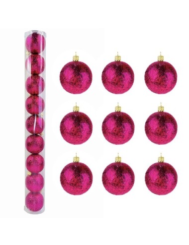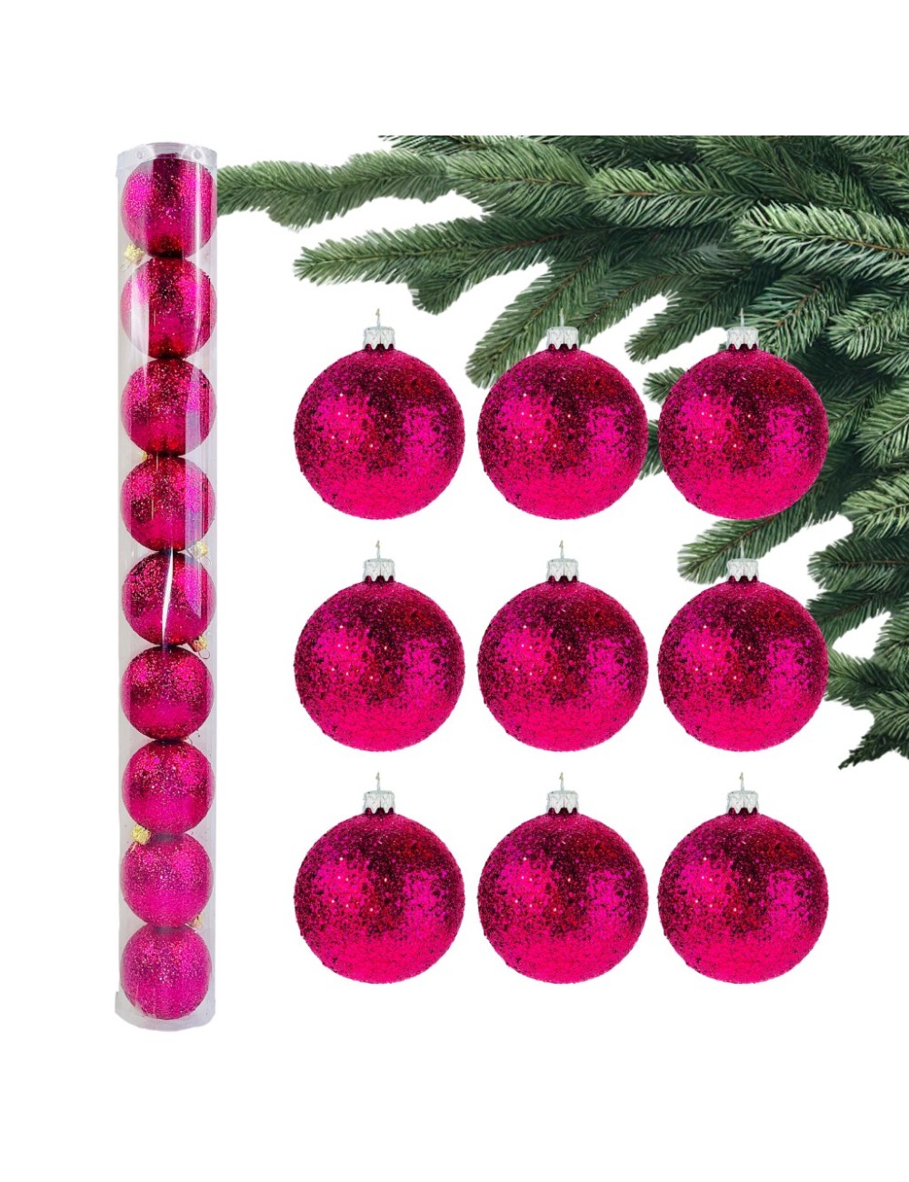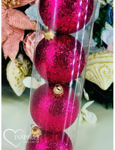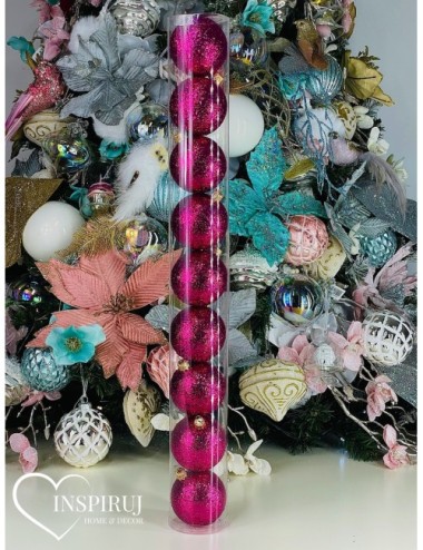 Oferujemy zestaw 9 fuksjowych bombek brokatowych o średnicy 60 mm, które są idealnym dodatkiem do dekoracji choinki. Wykonane z wysokiej jakości plastiku, dodają blasku i elegancji każdemu wnętrzu. Dzięki swojej wyjątkowej kolorystyce i efektownemu wykończeniu, te bombki wprowadzą świąteczny nastrój do Twojego domu.