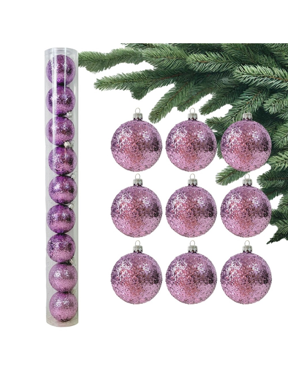 Ozdób swoją choinkę wyjątkowym zestawem 9 brokatowych bombek w jasnym fioletowym kolorze. Wykonane z wysokiej jakości materiałów, idealne na święta. Te bombki to doskonały wybór dla tych, którzy pragną nadać swojemu drzewku niepowtarzalny charakter.