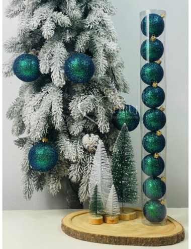 Zestaw 9 turkusowo-zielonych bombek holograficznych o średnicy 60 mm doda blasku Twojej choince. Wykonane z wysokiej jakości materiałów, są trwałe i efektowne, co czyni je idealnym wyborem na święta!