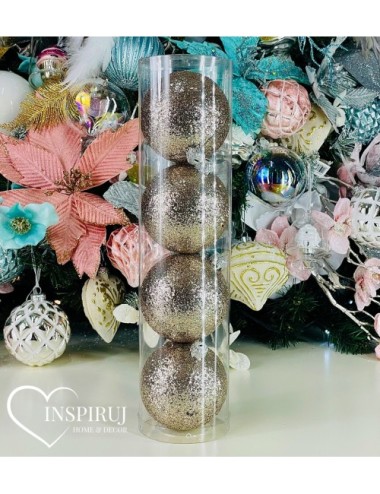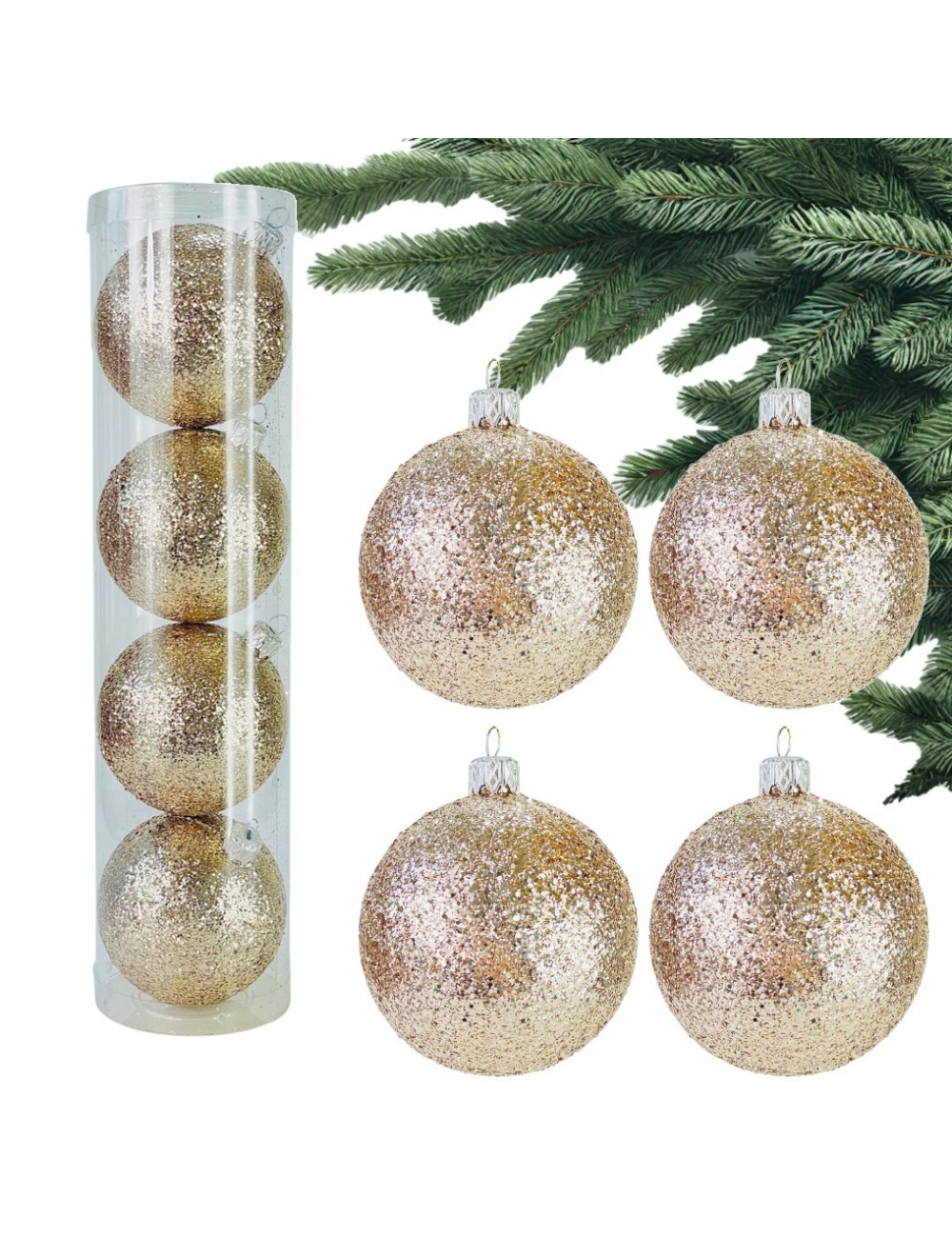Zestaw 4 brokatowych bombek szampańskich o średnicy 80 mm to idealny wybór na choinkę. Wykonane z wysokiej jakości plastiku, dodadzą elegancji Twoim świętom. Dzięki wyjątkowemu kształtowi i złotemu kolorowi, te bombki wprowadzą niepowtarzalny klimat do Twojego domu na czas świąt.