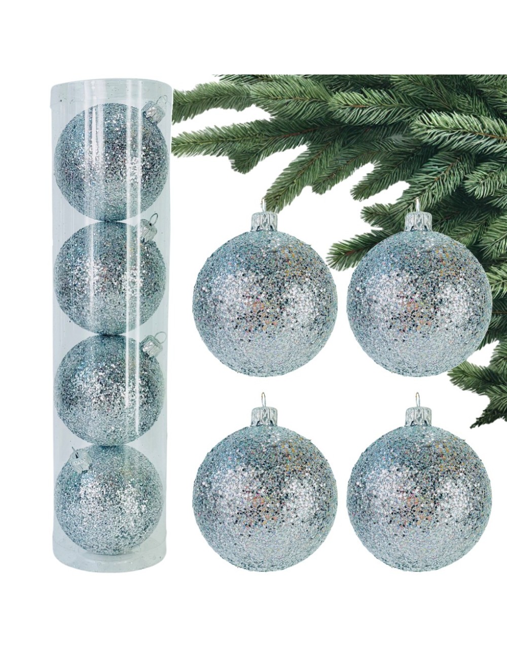 Plastikowe bombki srebrne brokatowe o średnicy 80 mm to idealny wybór na choinkę. Zestaw 4 sztuk, wykonany w Polsce z wysokiej jakości materiałów, doda blasku Twoim świętom.