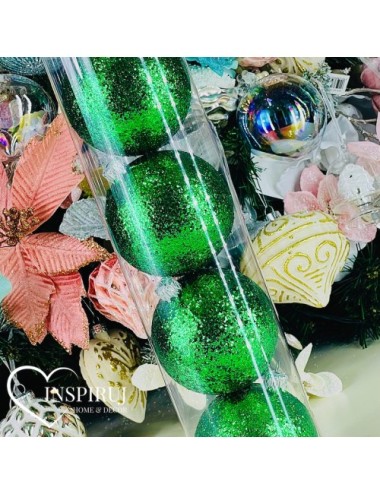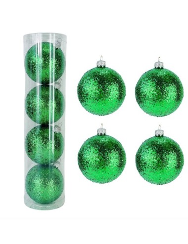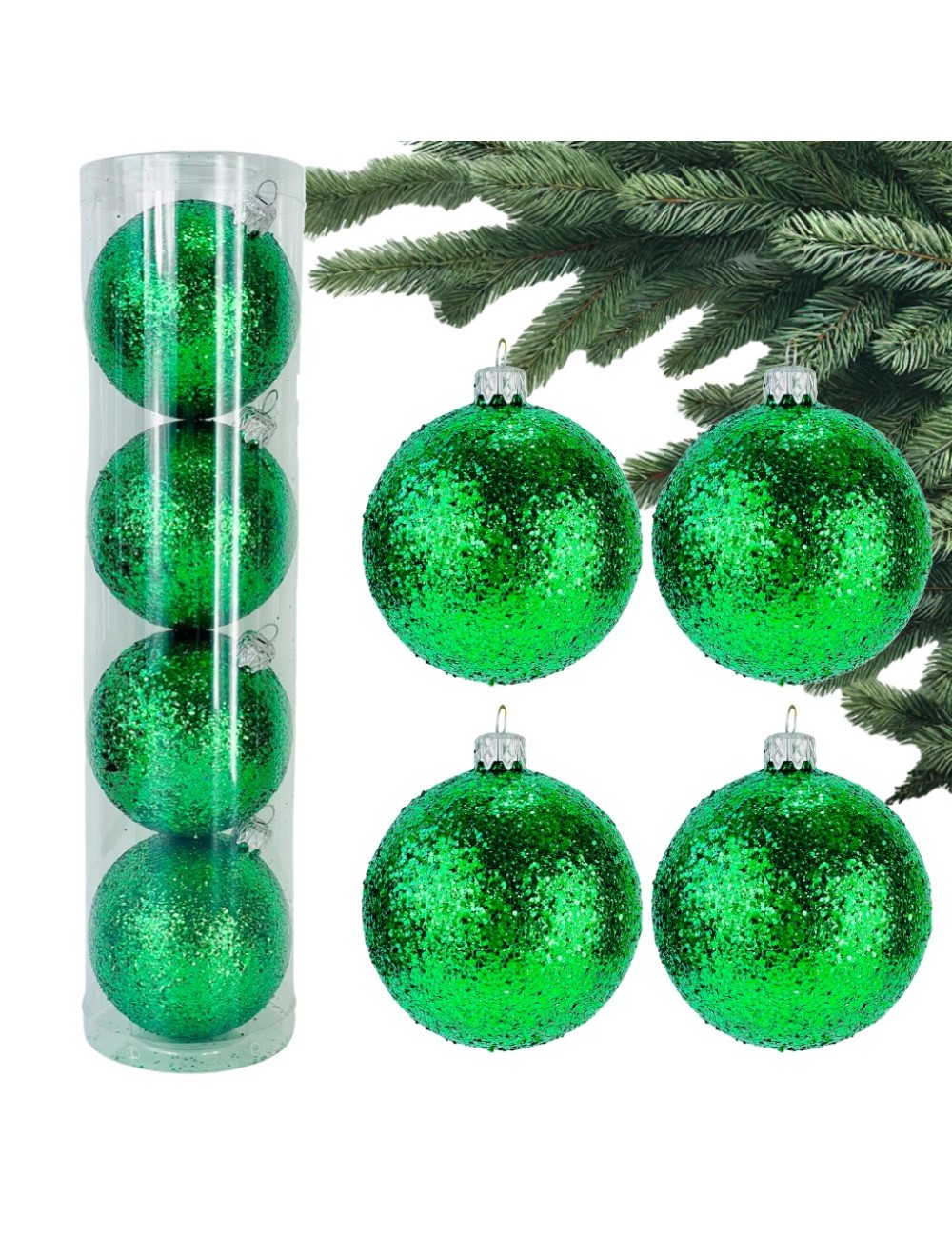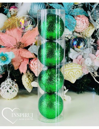 Oferujemy zestaw 4 zielonych bombek choinkowych z brokatem o średnicy 80 mm. Wykonane z wysokiej jakości plastiku, idealnie nadają się do dekoracji choinki. To lekki i bezpieczny wybór na święta, który doda blasku Twoim świątecznym aranżacjom.