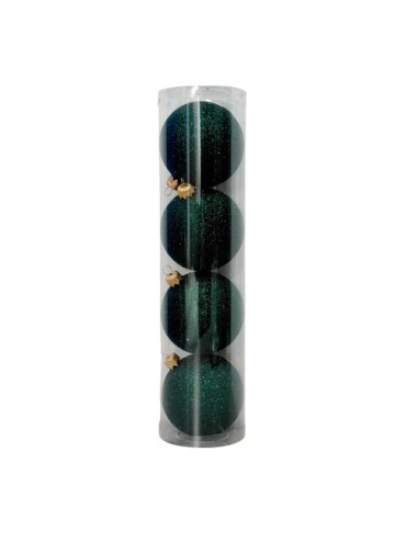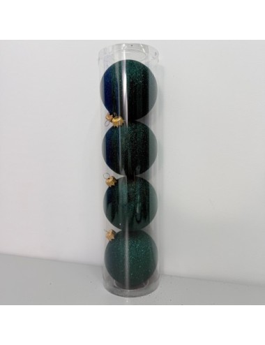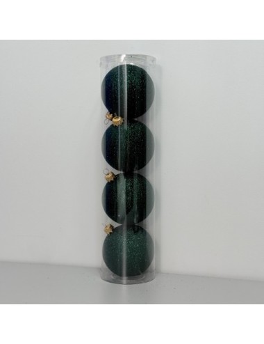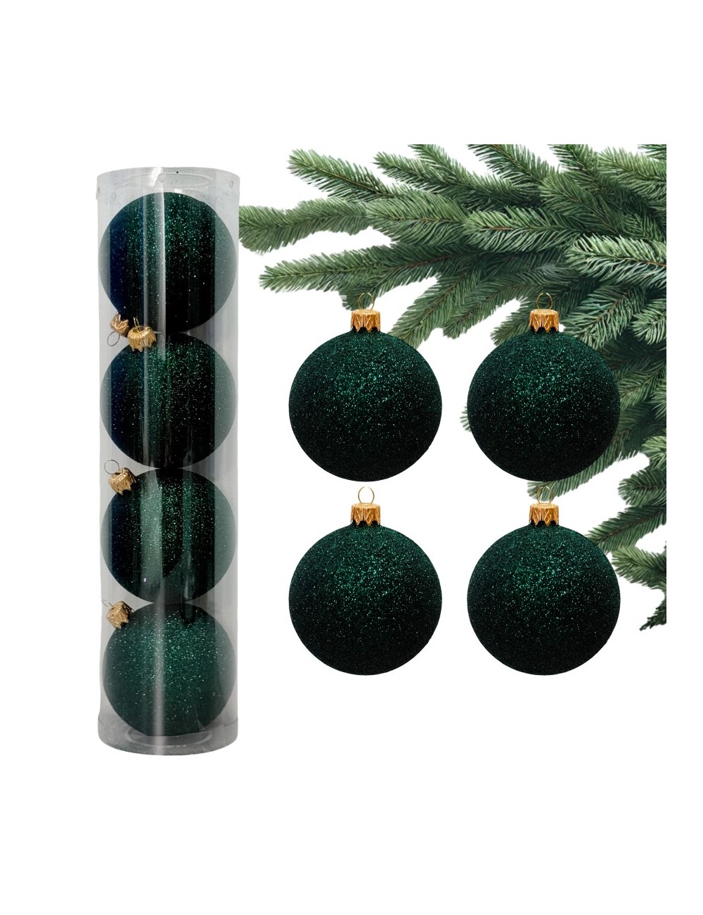 Plastikowe Bombki Holograficzne Ciemno-zielone brokatowe 80 mm - Zestaw 4 szt