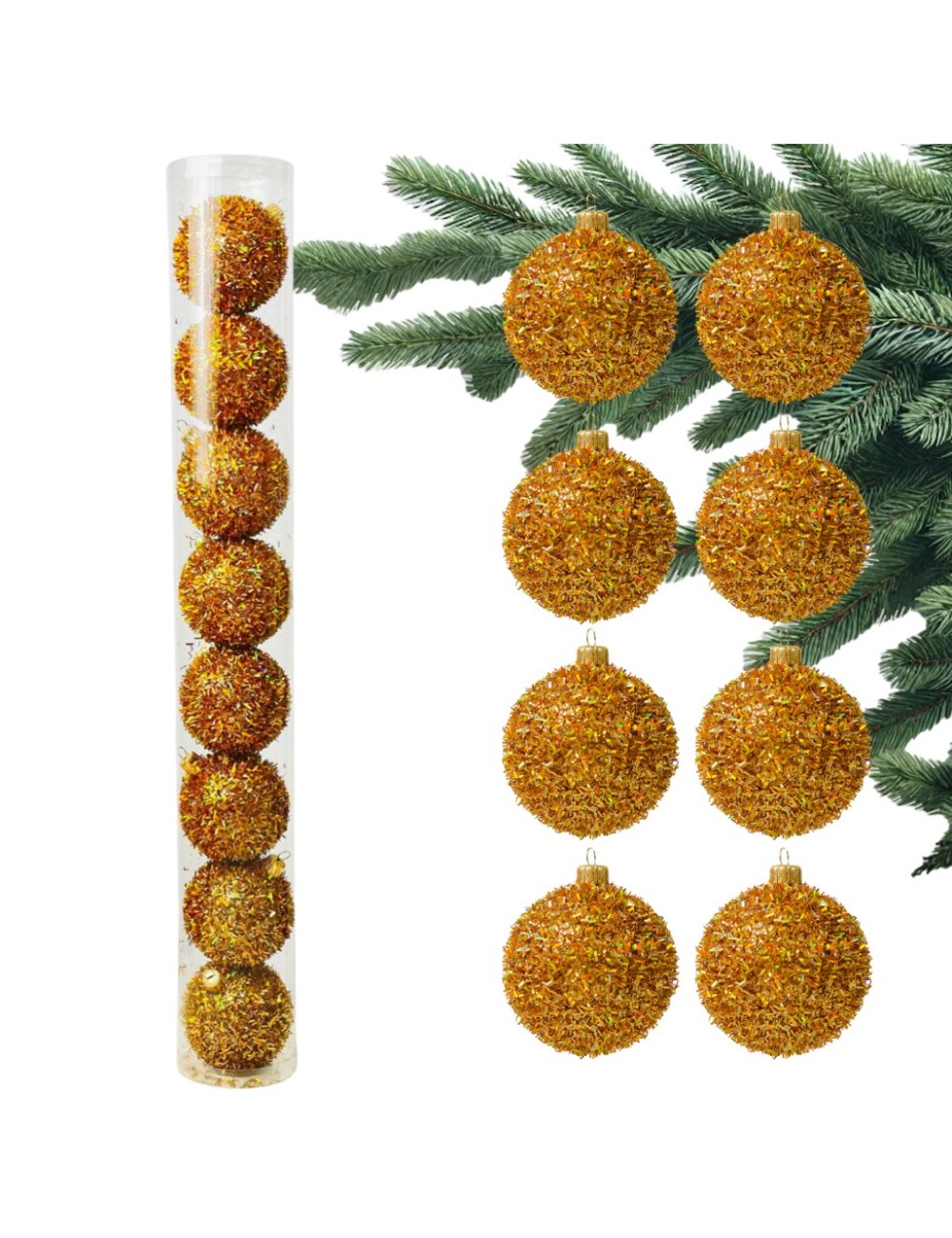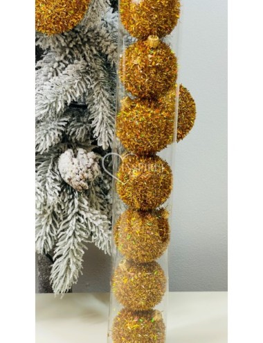 Odkryj nasz zestaw 8 wyjątkowych bombek choinkowych w kształcie złotych jeżyków. Wykonane z trwałego tworzywa sztucznego, pokryte brokatem i folią opalizującą, te bombki dodadzą blasku Twojej choince i sprawią, że będzie ona wyglądać niezwykle elegancko.