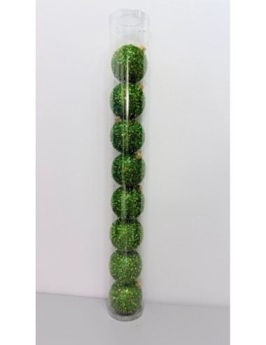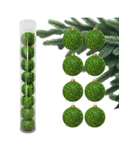 Zestaw 8 zielonych bombek 3D w kształcie jeżyka, pokrytych brokatem. Wykonane z wytrzymałego tworzywa, idealne do ozdabiania choinki i tworzenia wyjątkowej atmosfery świątecznej. Te bombki nie tylko dodają koloru, ale także wprowadzają magię do Twojego domu podczas świąt.