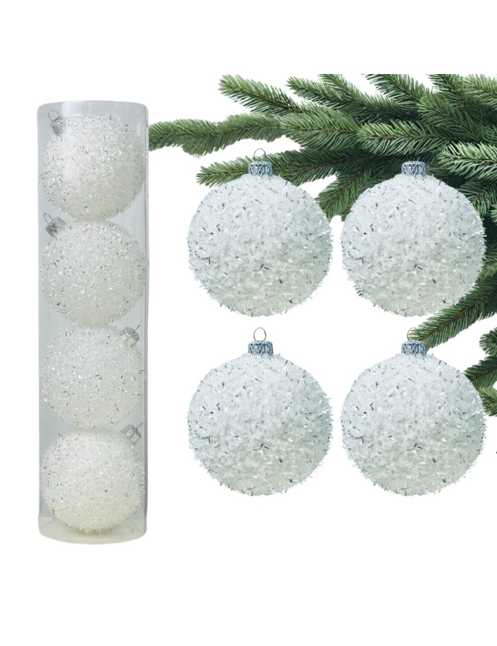 Plastikowe bombki 3D w kształcie białych jeżyków to doskonały wybór na święta. W zestawie 4 sztuki, wykonane w Polsce, z efektem holograficznym i brokatem. Idealne na choinkę, dodają wyjątkowego uroku każdej świątecznej dekoracji.