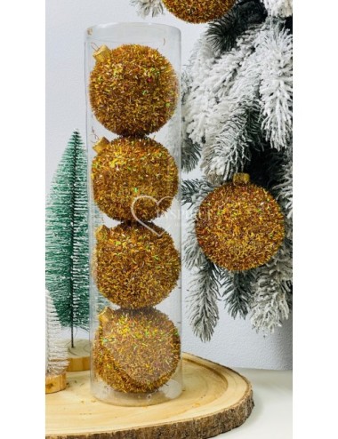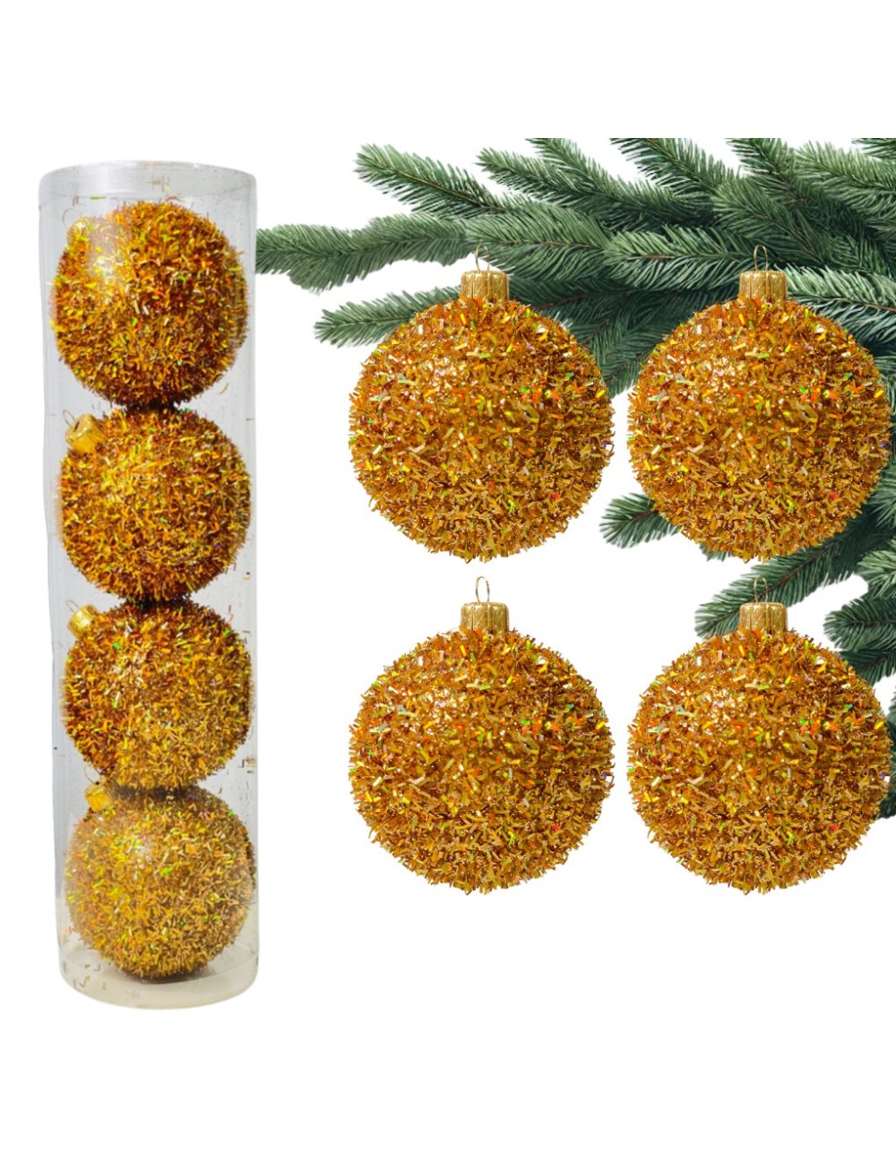 Odkryj nasz zestaw 4 plastikowych bombek 3D w kolorze złotym z brokatem. Wykonane z wysokiej jakości tworzywa sztucznego, te bombki oferują efekt holograficzny, który doda niepowtarzalnego uroku Twojej choince. Trwałe i estetyczne ozdoby, które doskonale ożywią świąteczny klimat w Twoim domu.