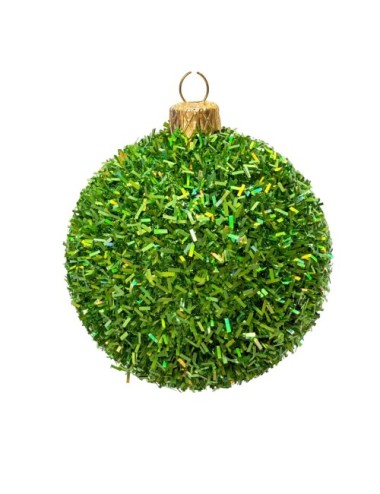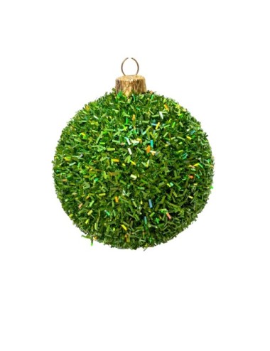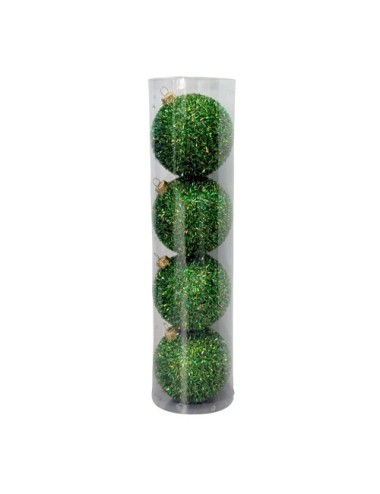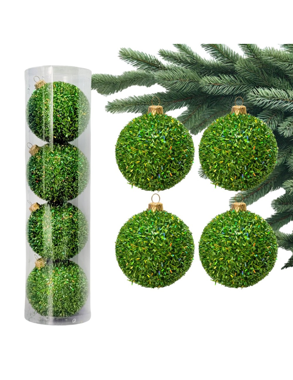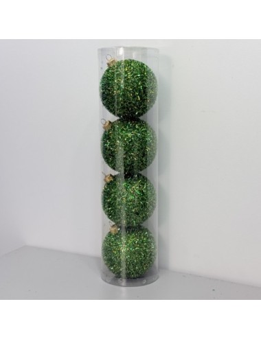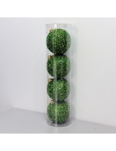 Plastikowe Bombki Holograficzne Ciemno-zielone brokatowe 80 mm - Zestaw 4 szt