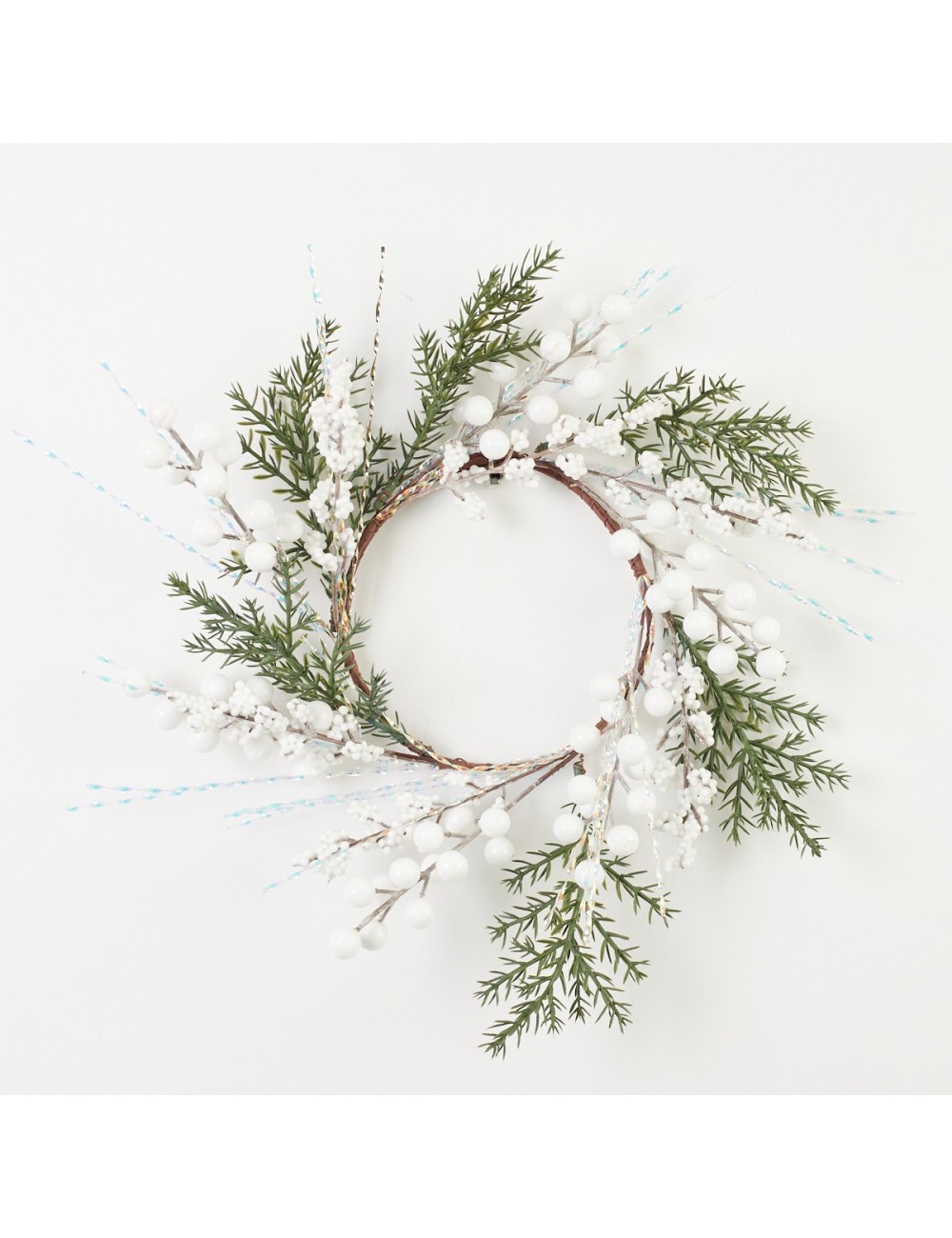Wianek Świąteczny - Wieniec z czerwonym głogiem, jarzębiną oraz soplami 40 cm