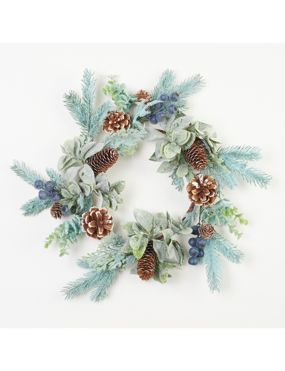 Wianek Świąteczny - Wieniec śnieżony z igliwia i głogu 45 cm
