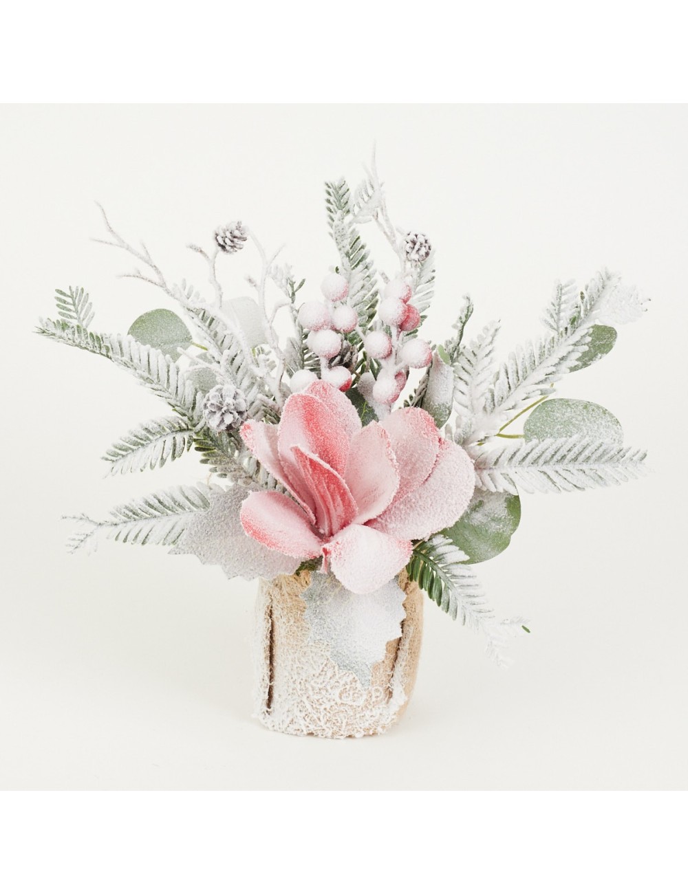 1️⃣ Kształt: Stroik świąteczny śnieżony w jucie.