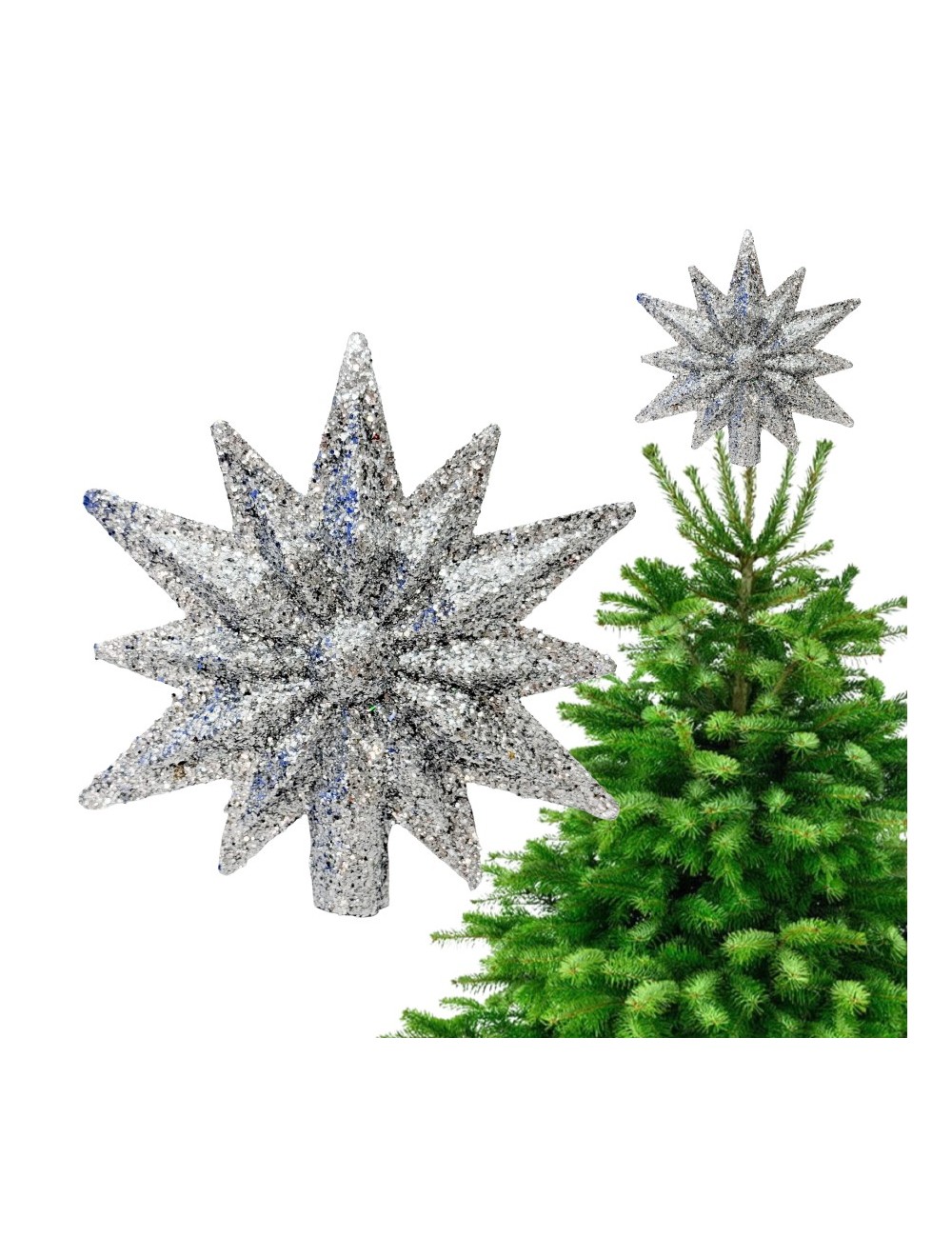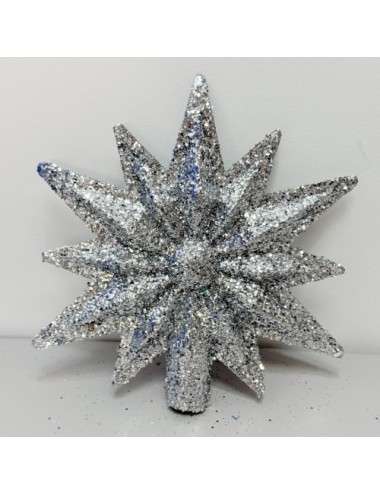 Gwiazda na choinkę, srebrny brokat, 20cm