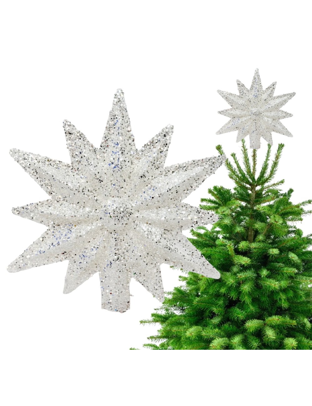Gwiazda na choinkę, srebrny brokat, 20cm