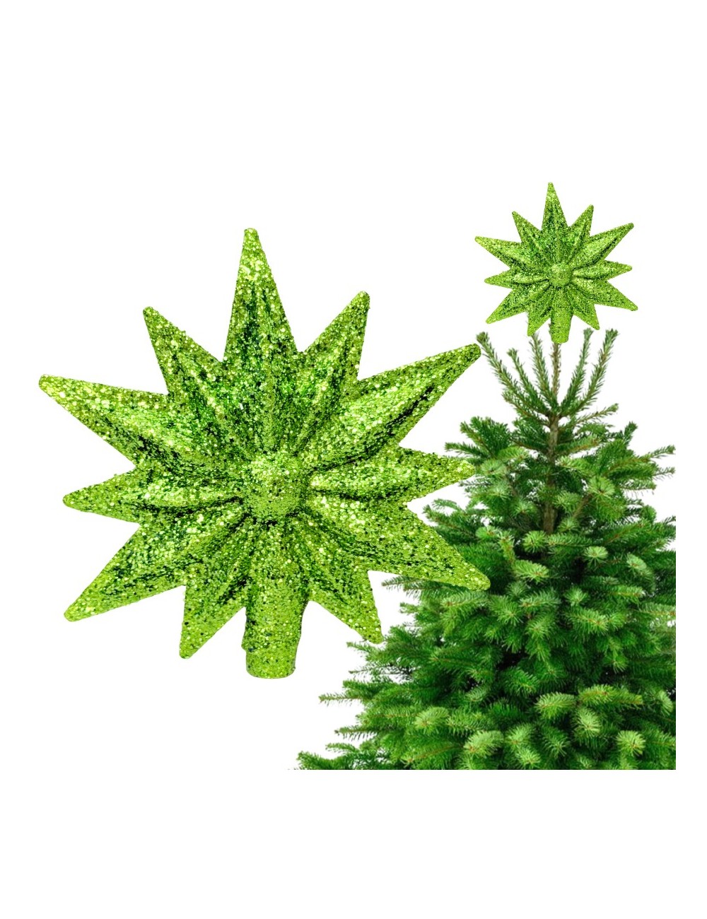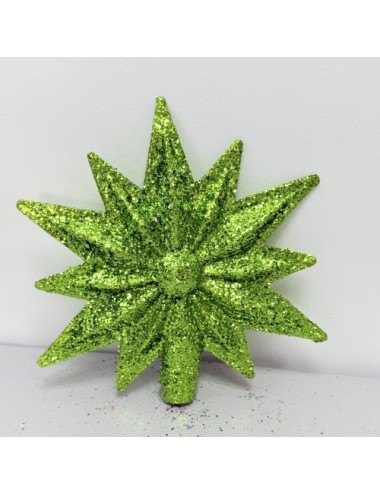 Ożyw swoją choinkę wyjątkową, 12-ramienną gwiazdą w jasno-zielonym brokacie. Wysoka na 17 cm, łatwa w instalacji, stanie się idealnym zwieńczeniem świątecznych dekoracji.