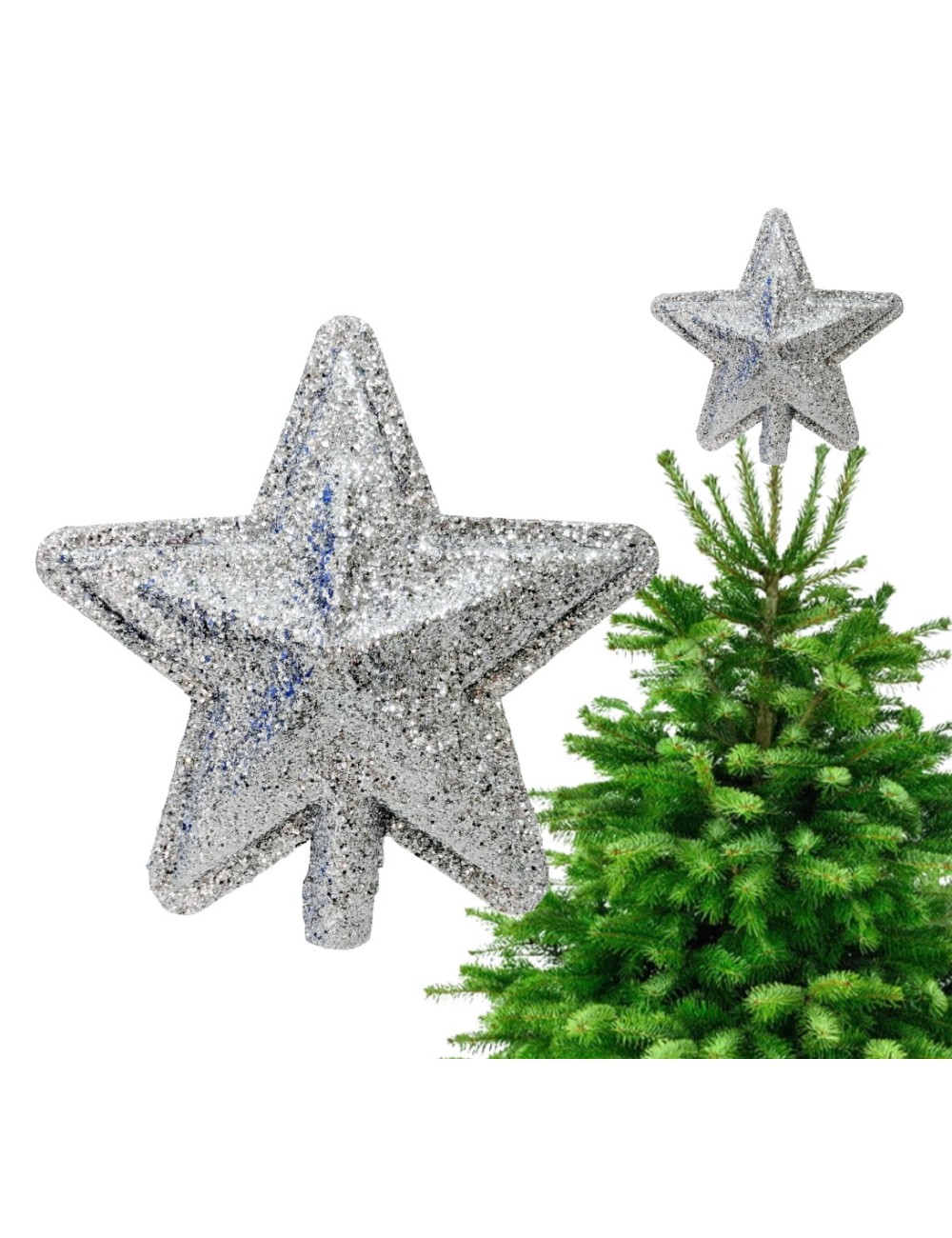 Gwiazda na choinkę, srebrny brokat, 20cm