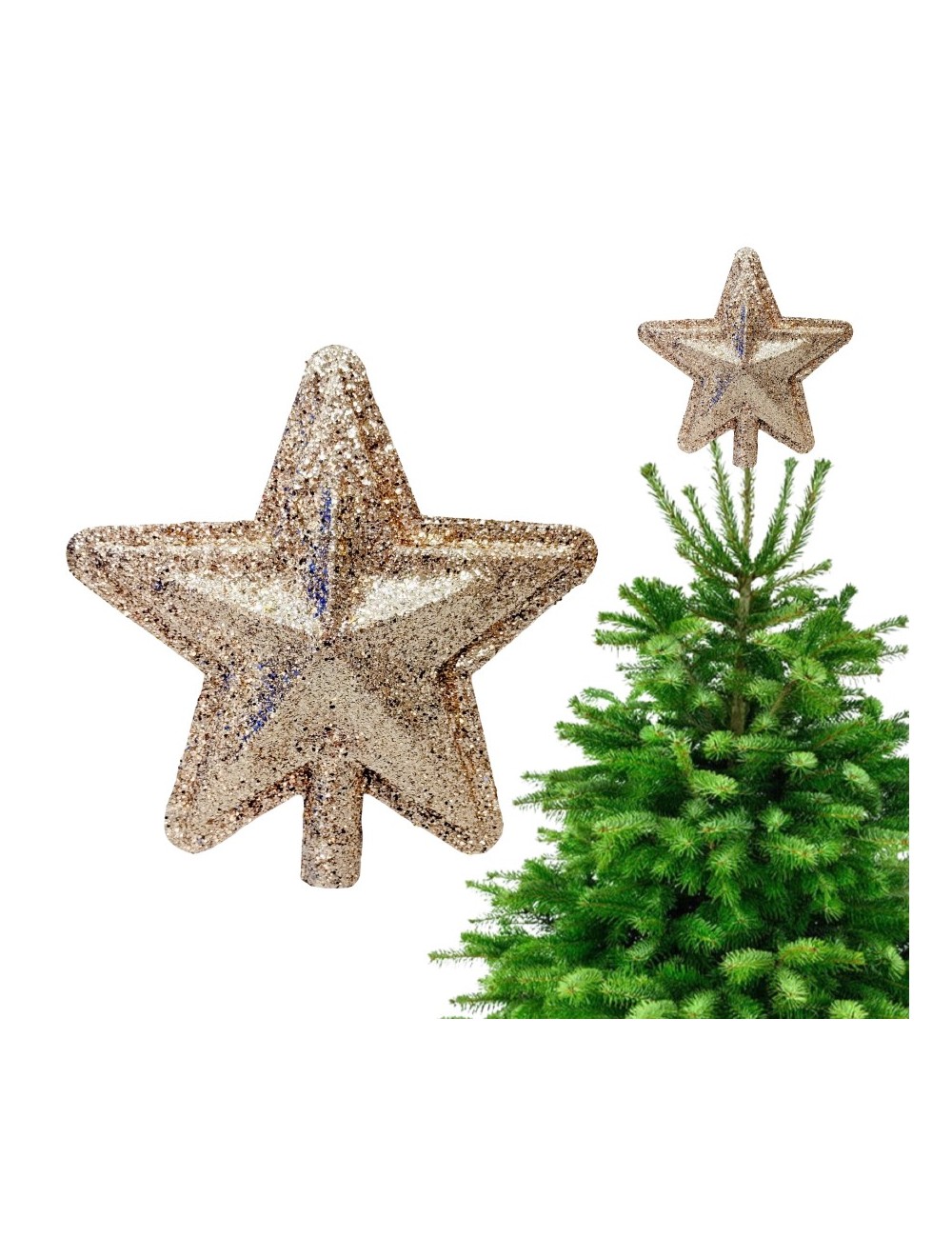 Biała gwiazda na choinkę z brokatem (20 cm) to elegancka ozdoba, która pięknie odbija światło lampek. Idealna do stylizacji Boho, rustykalnej, Art Deco i glamour. Stwórz wymarzoną choinkę! | Srebrna gwiazda na choinkę z brokatem (20 cm) to elegancka ozdoba, która doda blasku Twojemu drzewku. Wysokiej jakości, trwała i efektowna, idealna do różnych stylów dekoracji. | Ozdobna gwiazda na choinkę w kolorze szampańskiego brokatu (20 cm) to doskonały wybór dla miłośników stylu Boho, rustykalnego i glamour. Idealnie błyszczy w świetle lampek! | Ozdób swoją choinkę złotą gwiazdą z brokatem o wysokości 20 cm. Wykonana z wysokiej jakości tworzywa, nada blasku każdej kompozycji i wpasuje się w różne style. |
