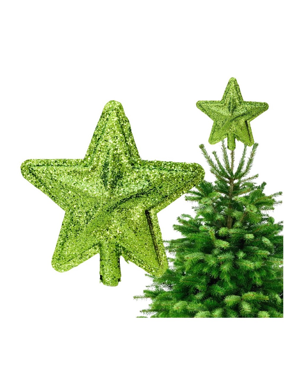 Dodaj blasku swojemu drzewku dzięki 18 cm jasno-zielonej gwieździe brokatowej. Idealna na czubek choinki, wprowadza świąteczny nastrój i zachwyca swoim wyjątkowym kształtem.