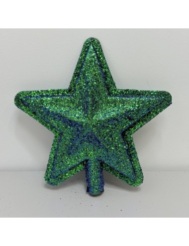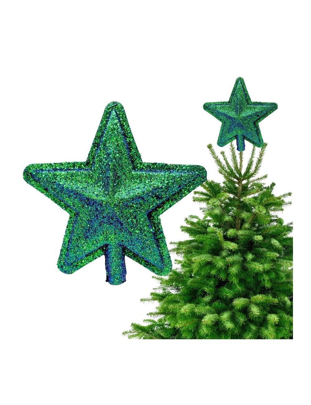 Ozdób swoją choinkę wyjątkową, 18 cm gwiazdą w ciemno-zielonym, holograficznym brokacie. Idealna na święta, dodaje blasku i magii Twoim dekoracjom.